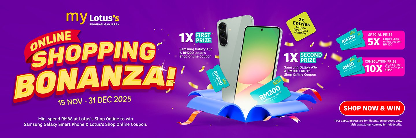 Kasi Spin, Pasti Win! Weekly Catalogue Rewards Catalogue E-Wallet Next Day Delivery Orders The best deals for the week Best-selling new arrivals -20% Quick view Add to cart 100 PLUS ORIGINAL 325MLX28 ₱590.08 Original price was: ₱590.08.₱471.20Current price is: ₱471.20. -19% Quick view Add to cart ANCHOR SLICED CHEESE VALUE PACK 400G ₱4,317.60 Original price was: ₱4,317.60.₱3,477.60Current price is: ₱3,477.60. -30% Quick view Add to cart AYAMAS CHICKEN FRANKFURTER 340G ₱1,476.00 Original price was: ₱1,476.00.₱1,029.60Current price is: ₱1,029.60. -23% Quick view Add to cart BLUEBERRIES 125G ₱159.84 Original price was: ₱159.84.₱122.40Current price is: ₱122.40. -40% Quick view Add to cart BREEZE LIQ LOW SUDS ANTI BAC & COLOUR PROTECT 3.6KG ₱478.40 Original price was: ₱478.40.₱286.08Current price is: ₱286.08. -2% Quick view Add to cart CAP RIAMAS SUPER IMPORT 10KG ₱488.00 Original price was: ₱488.00.₱478.40Current price is: ₱478.40. Festive Highlights 🎅 -29% Quick view Add to cart RESUKA CHRISTMAS BOX ₱111.84 Original price was: ₱111.84.₱79.84Current price is: ₱79.84. -24% Quick view Add to cart MISTER POTATO BBQ CRIPS 125G ₱69.60 Original price was: ₱69.60.₱52.64Current price is: ₱52.64. -50% Quick view Add to cart KINDER JOY T4 GIFT PACK BLUE ₱479.84 Original price was: ₱479.84.₱239.84Current price is: ₱239.84. -25% Quick view Add to cart FERRERO ROCHER T24 ₱702.40 Original price was: ₱702.40.₱527.84Current price is: ₱527.84. -59% Quick view Add to cart CHI FOREST SP/WTR GRAPE DELIGHT 6X330ML ₱383.84 Original price was: ₱383.84.₱158.08Current price is: ₱158.08. -20% Quick view Add to cart 100 PLUS ORIGINAL 325MLX28 ₱590.08 Original price was: ₱590.08.₱471.20Current price is: ₱471.20. Weekly Highlights 👍 -17% Quick view Add to cart LOTUSS ORIGINAL FRIED CHICKEN 750G ₱287.84 Original price was: ₱287.84.₱239.84Current price is: ₱239.84. -17% Quick view Add to cart LOTUSS HOT+SPICY FRIED CHICKEN 750G ₱287.84 Original price was: ₱287.84.₱239.84Current price is: ₱239.84. -25% Quick view Add to cart INDOMIE MI GORENG SPECIAL VALUE PACK 10S ₱127.84 Original price was: ₱127.84.₱95.84Current price is: ₱95.84. -14% Quick view Add to cart FARM FRESH MILK 2L ₱259.20 Original price was: ₱259.20.₱222.40Current price is: ₱222.40. -2% Quick view Add to cart CAP RIAMAS SUPER IMPORT 10KG ₱488.00 Original price was: ₱488.00.₱478.40Current price is: ₱478.40. -40% Quick view Add to cart BREEZE LIQ LOW SUDS ANTI BAC & COLOUR PROTECT 3.6KG ₱478.40 Original price was: ₱478.40.₱286.08Current price is: ₱286.08. Weekly Fresh Deals 🥕 -27% Quick view Add to cart UDANG SEDERHANA (KG)(9085) ₱526.40 Original price was: ₱526.40.₱382.40Current price is: ₱382.40. -27% Quick view Add to cart LOTUSS SPICY CHIC FLOSS 4S (0293) ₱143.84 Original price was: ₱143.84.₱104.80Current price is: ₱104.80. -42% Quick view Add to cart LOTUSS CENDAWAN ENOKI 100G ₱26.40 Original price was: ₱26.40.₱15.20Current price is: ₱15.20. -11% Quick view Add to cart GRAZE FARMS AUS WAGYU ROSTBIFF STEAK 150GM PACK ₱335.84 Original price was: ₱335.84.₱297.60Current price is: ₱297.60. -26% Quick view Add to cart GRAZE FARMS AUS BEEF BURGER PATTY 150G PACK ₱111.84 Original price was: ₱111.84.₱82.40Current price is: ₱82.40. -23% Quick view Add to cart BLUEBERRIES 125G ₱159.84 Original price was: ₱159.84.₱122.40Current price is: ₱122.40. Electrical Deals -44% Quick view Add to cart SHARP CONVENTIONAL RICE COOKER 1.8L KSH188GWH ₱2,544.00 Original price was: ₱2,544.00.₱1,424.00Current price is: ₱1,424.00. -41% Quick view Add to cart PHILIPS 32PHT5678 32IN HD TV ₱12,784.00 Original price was: ₱12,784.00.₱7,504.00Current price is: ₱7,504.00. -19% Quick view Add to cart MAG RAPID AIR FRYER MG-AF4201/AF4203 4.5L ₱1,758.40 Original price was: ₱1,758.40.₱1,422.40Current price is: ₱1,422.40. -32% Quick view Add to cart KHIND MICROWAVE OVEN 20L MW2002 ₱4,240.00 Original price was: ₱4,240.00.₱2,864.00Current price is: ₱2,864.00. -24% Quick view Add to cart ELO HIGH SPEED COOKING BLENDER ELO-MC800 ₱2,718.40 Original price was: ₱2,718.40.₱2,064.00Current price is: ₱2,064.00. -22% Quick view Add to cart ELO EGG/RICE SMART MULTICOOKING POT ELO-MC18U ₱1,438.40 Original price was: ₱1,438.40.₱1,118.40Current price is: ₱1,118.40. Chilling Deals ❄️ -11% Quick view Add to cart VITAGEN LESS SUGAR ASSORT 5X125ML ₱88.00 Original price was: ₱88.00.₱78.40Current price is: ₱78.40. -14% Quick view Add to cart MARIGOLD HL PLAIN MILK 1.89L ₱4,053.60 Original price was: ₱4,053.60.₱3,477.60Current price is: ₱3,477.60. -16% Quick view Add to cart FERNLEAF YOGURT NATURAL 450G ₱1,632.00 Original price was: ₱1,632.00.₱1,365.60Current price is: ₱1,365.60. -13% Quick view Add to cart CP SMOKED CHICKEN COCKTAIL 200G ₱1,896.00 Original price was: ₱1,896.00.₱1,656.00Current price is: ₱1,656.00. -30% Quick view Add to cart AYAMAS CHICKEN FRANKFURTER 340G ₱1,476.00 Original price was: ₱1,476.00.₱1,029.60Current price is: ₱1,029.60. -19% Quick view Add to cart ANCHOR SLICED CHEESE VALUE PACK 400G ₱4,317.60 Original price was: ₱4,317.60.₱3,477.60Current price is: ₱3,477.60.